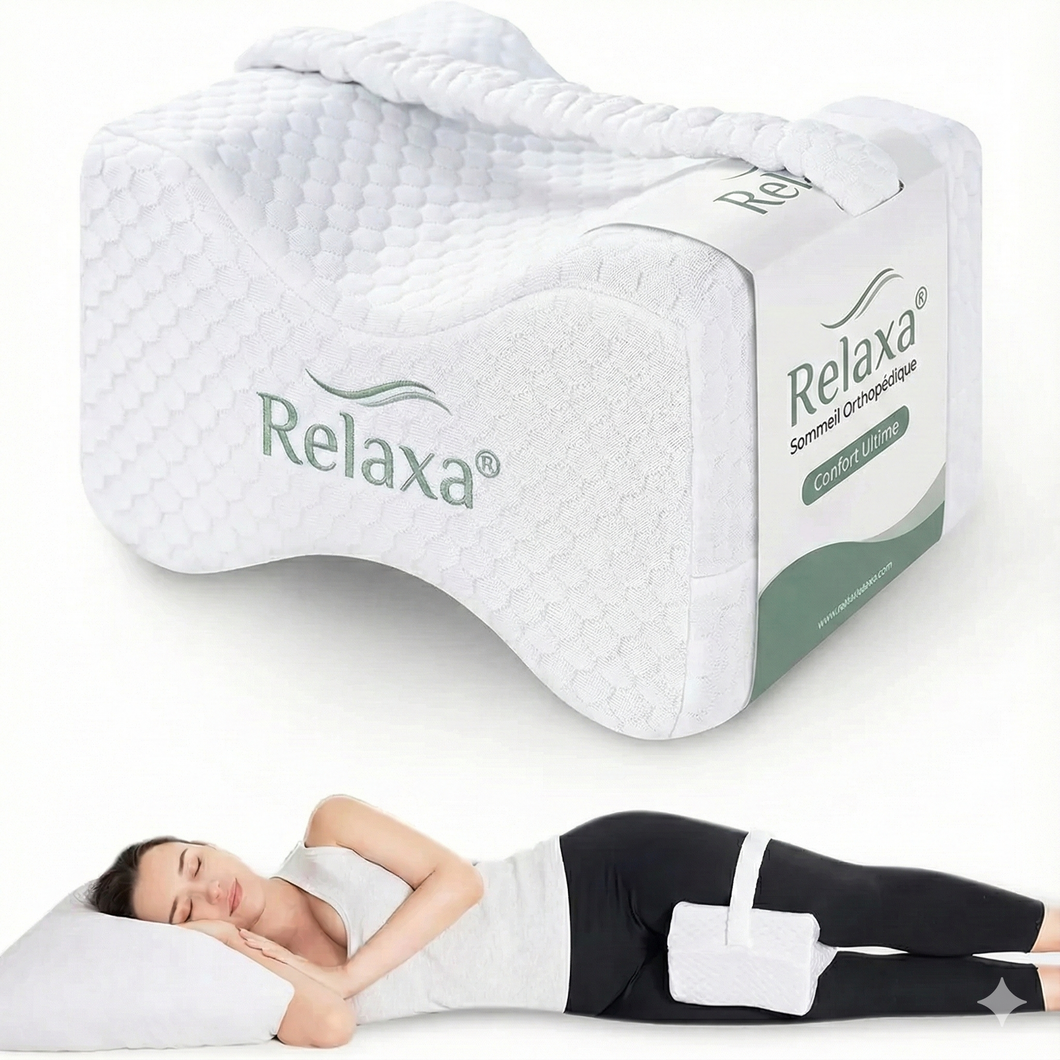 Coussin orthopédique pour genoux à la texture alvéolée respirante, conçu pour aligner la colonne vertébrale et soulager les tensions. Doté d'une sangle de maintien pratique, il reste parfaitement en place pour assurer une nuit de sommeil réparatrice.